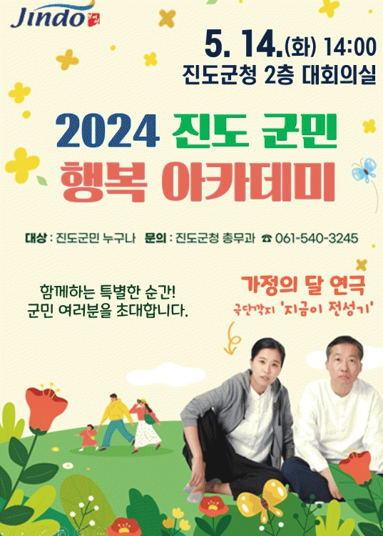 진도 군민행복 아카데미에 관한 자세한 사항은 진도군청 총무과 인재교육팀으로 문의하면 된다.
