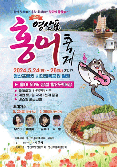 나주시는 5월 24일부터 26일까지 3일간 영산포둔치 시민체육공원 일원에서 ‘제20회 영산포 홍어축제’를 개최한다고 12일 밝혔다.