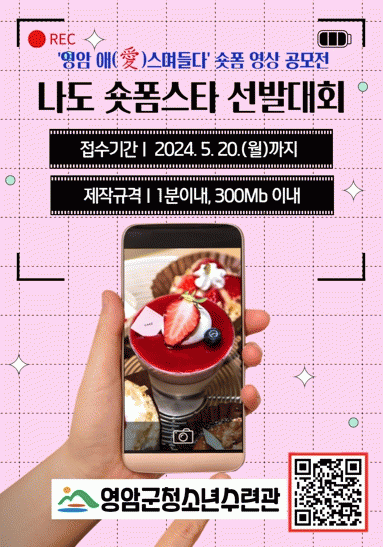 9~18세 영암군 청소년이 이룬 팀이 공모에 참여할 수 있고, 영암의 놀거리, 먹거리, 볼거리 등 지역자원을 활용해 짧지만 개성 있고 참신한 숏폼(short-form) 영상을 제작·제출하면 된다.