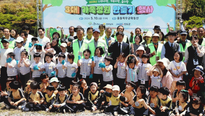이날 행사는 정찬균 전남도 동부지역본부장, 김희수 진도군수, 3대 60가족과 (사)숲속의 전남 회원 및 지역주민 등 250여 명이 참석해 무궁화와 수국을 식재하고 가족 이름표도 달았다.