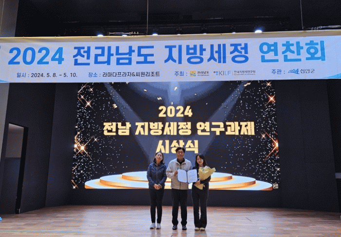 군은 “재무과 정혜림 주무관이 지난 8일 신안군 자은도 라마다프라자&씨원리조트에서 개최된 전라남도 지방세정 연찬회에서 ’해양관광자원을 통한 세외수입증대-돌머리에 피어난 해양관광허브‘라는 주제의 연구과제 발표로 특별상을 수상했다”고 밝혔다.