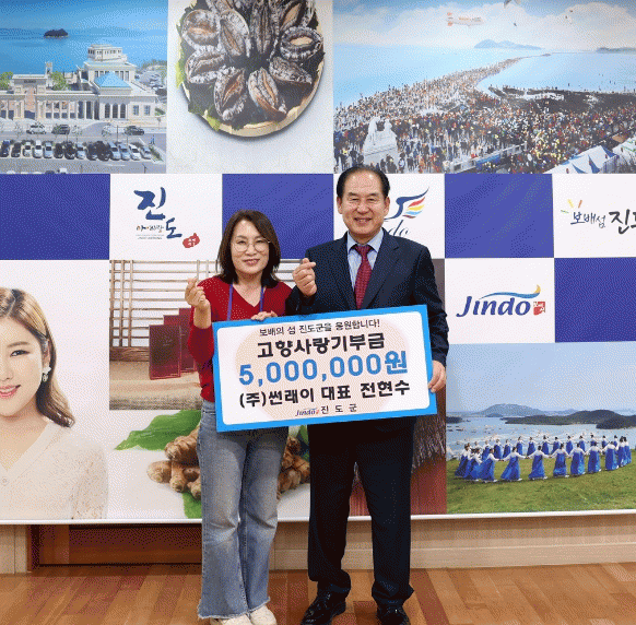 또한 기부금을 기탁하며 “아름다운 보배섬 진도군을 진심으로 응원한다”며 “또다른 고향인 진도군에 애정을 갖고 매년 고향사랑기부를 이어가겠다”고 말했다.