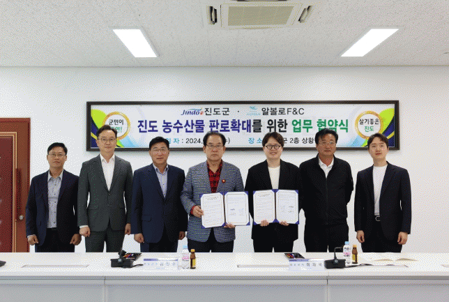 이번 협약식은 김희수 진도군수를 비롯해 이재욱 알볼로F·C 대표 등 관계 임직원들이 참여해 진도산 농수산물의 유통 판로 지원과 판매전략, 홍보 등을 상호 협력하기로 했다.