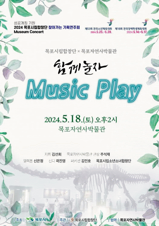 목포시립합창단은 오는 18일 오후 2시 목포자연사박물관(중앙홀, 중앙로비 등)에서 찾아가는 기획연주회를 개최한다.