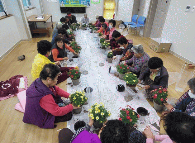 어르신들이 가꾸기 쉬운 △목마가렛 △시클라멘 △임파첸스 △스파트필름 △카랑코애 식물을 직접 화분에 심으면서 소탈한 이야기를 나누다 보니 어르신들이 한결 즐거워하셨다.