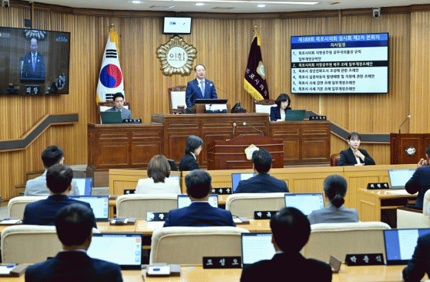 주요 부의안건은 ?김관호 의원의 ‘목포시의회 지방공무원 공무국외출장 규칙 일부개정규칙안’, ‘목포시 체육시설관리 운영 조례 일부개정조례안, ?정재훈 의원의 ‘목포시의회 지방공무원 복무 조례 일부개정조례안’, ?유창훈 의원의 ‘목포시 청년친화도시 조성에 관한 조례안’ ?이형완 의원의 ‘목포시 실종아동의 발생예방 및 지원에 관한 조례안’, ?최유란 의원의 ‘목포문화재단 설립 및 운영조례 전부개정조례안’, ?박수경 의원의 ‘목포시 생활문화 진흥에 관한 조례안’ 등 총 15건이 가결됐다.