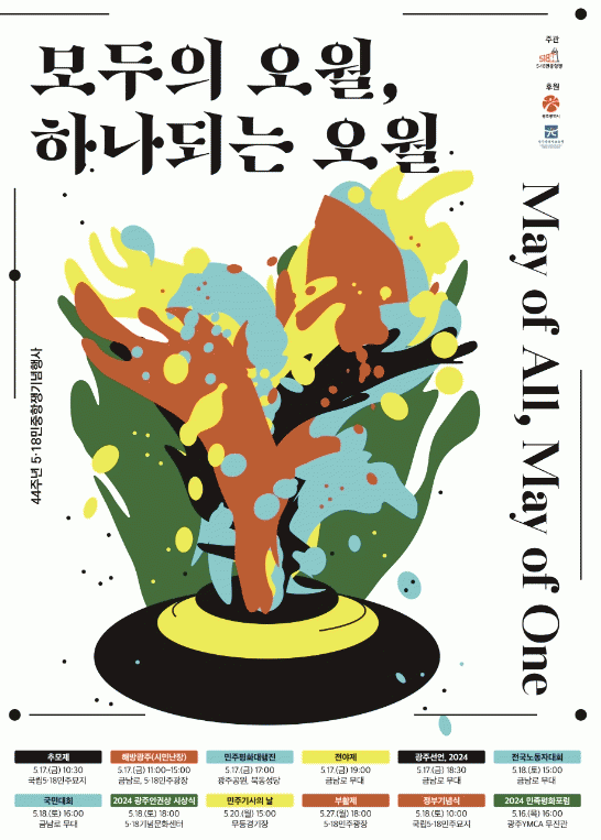 ‘모두의 오월, 하나되는 오월(May of All, May of All)’을 공식 구호(슬로건)로 내건 제44주년 5·18민주화운동 기념행사는 5·18기념재단을 포함한 오월 공법3단체가 모두 참여해 하나되는 오월의 모습을 보여준다.