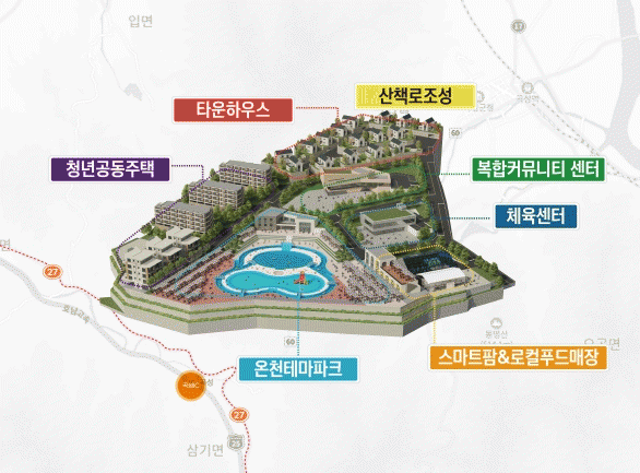 지역활력타운은 국토부가 주관한 사업으로 전국에 10개소가 선정됐으며, 지방의 정주여건 개선과 정착 지원을 위해 ‘주거, 생활인프라,생활서비스’가 결합된 생활거점을 조성하는 사업이다. 군은 지역 특색을 반영하여 주거, 생활 편의, 일자리 창출까지 활력타운 내에서 해결할 수 있게 다각도에서 신규 유입 인구의 안정적인 정착을 지원 할 예정이다.