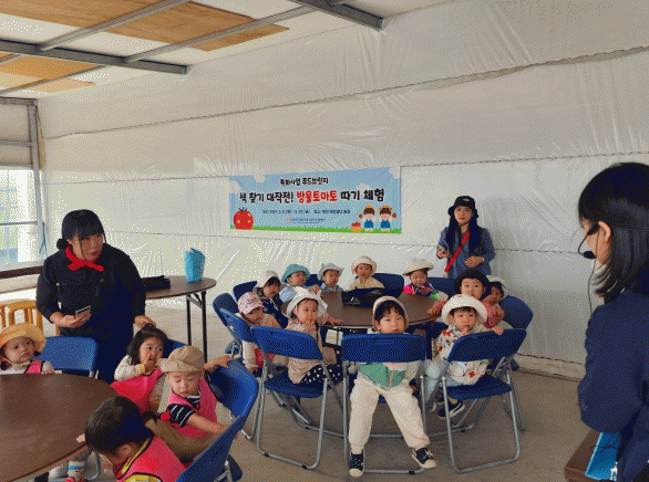 ‘색 찾기 대작전’이라는 주제로 알록달록 컬러 푸드에 대한 영양교육, 방울토마토 미니 화분 만들기, 방울토마토 따기 체험 등으로 어린이들의 눈높이에 맞는 재미와 흥미를 유발할 수 있는 영양교육과 농촌 체험으로 높은 호응과 올바른 식생활 습관을 만드는 데 도움을 주었다.