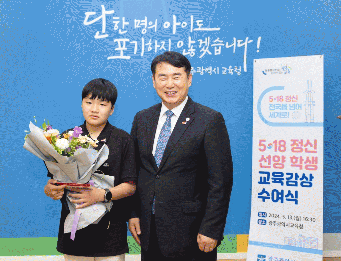 이 교육감은 이 자리에서 5·18민주화운동 왜곡에 대응한 정의로운 행동을 지지하며 학생을 격려했다.