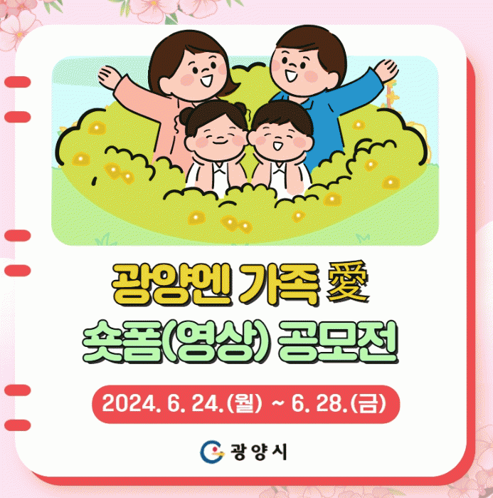 김명덕 청년일자리과장은 “이번 공모전을 통해 광양시민들이 가족과 잊지 못할 추억을 만들고 가족의 따뜻함을 느낄 수 있는 계기가 되길 희망한다”며 “시민들의 많은 관심과 참여를 바란다”고 말했다.