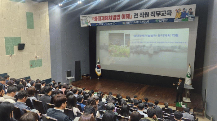 대한산업안전협회 광주지역본부 교육운영국 국장을 초빙해 진행된 이번 교육은 ▲정부정책과 위험성 평가 ▲산업안전보건법과 중대재해처벌법 주요 내용 ▲안전보건 체계 구축 및 이행 조치 사항 ▲지방자치단체 사고사례 및 대책 등에 대해 다뤘다.
