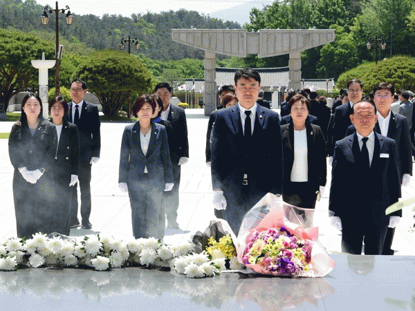 이후 추모탑에서 헌화와 분향을 시작으로 묵념의 시간을 갖고, 윤상원 열사의 묘역 등을 순회하며 참배를 통해 오월 영령들의 숭고한 넋을 추모했다.