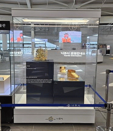 나주시는 지역 대표 문화재인 금동관과 금동신발 재현품을 제작해 지난 2일부터 각 2점씩 총 4점을 전시중이다.
