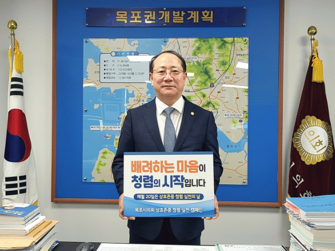 한편 목포시의회는 매월 다른 주제의 상호존중 실천과제를 홈페이지에 게재하고 SNS 릴레이 챌린지를 통해 상호존중 청렴실천 운동의 날을 진행할 예정이다.