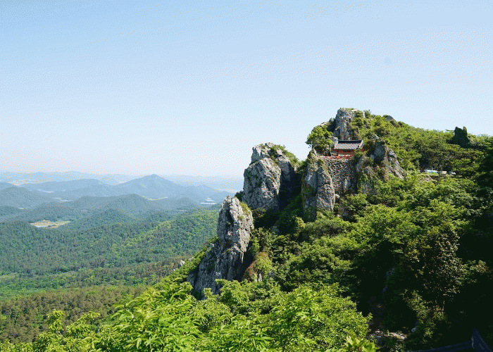 미황사 사적비(1692)에“일만불이 다투었다”라고 기록된 달마산의 기암괴석은 달마산에 자리잡은 일만부처의 모습을 빼닮았다.