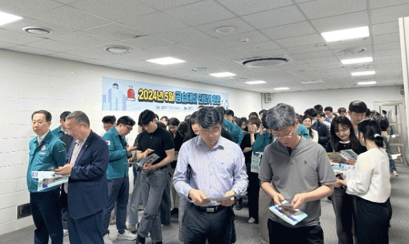 ‘5월 공습대비 민방위 훈련’은 청내 방송을 통해 공습경보를 발령해 상황을 전파하고, 직장민방위대원을 포함한 대피 유도요원의 안내에 따라 직원들이 공습 상황에서 신속히 대피할 수 있도록 실시한 훈련이다.