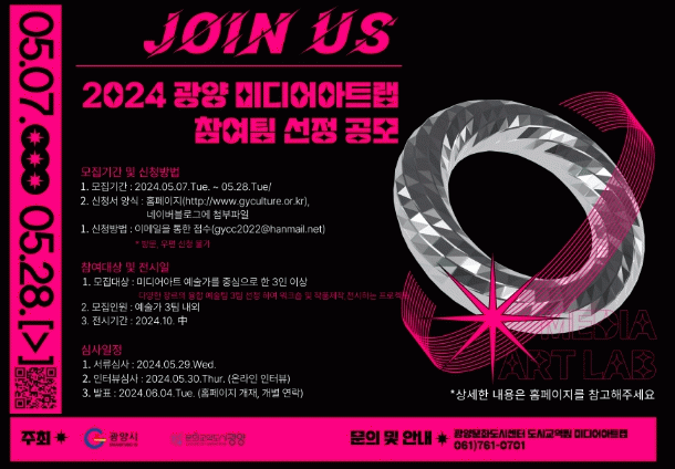 ‘2024 광양 미디어아트랩’은 ‘신소재’를 활용해 미디어 ‘아트워크’를 제작하는 미디어아트 사업이다.