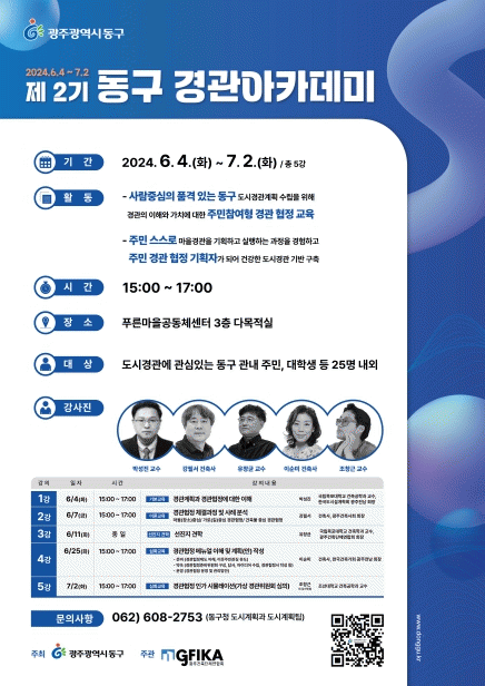 참여 방법은 동구 주민이면 가능하고, 이메일 접수를 통해 선착순 25명 모집한다. 기타 자세한 사항은 동구청 누리집에서 확인할 수 있다.