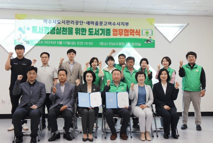 이날 협약식은 김유화 도시관리공단 이사장을 비롯한 도시관리공단 관계자, 여수시립도서관 관계자, 황준호 새마을문고여수시지부 회장, 새마을문고여수시지부 이사 등 30여명이 참석하여 진남수영장 1층 휴게공간과 장애인들이 스포츠 및 생활체육활동을 즐길 수 있는 장애인국민체육센터 휴게실에 서가를 설치하여 책을 자주 접하지 못하는 장애인이 쉽게 독서할 수 있는 공간을 마련하였다.