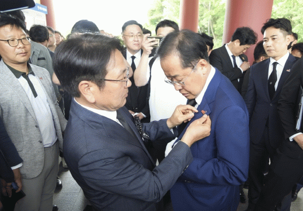 강기정 시장은 이날 국립5?18민주묘지에서 홍준표 대구시장과 이만규 대구시의회 의장, 이종화 대구경제부시장 등 대구시 대표단을 직접 맞이했다. 강 시장은 홍 시장에게 5·18민주화운동 배지를 달아주고 광주 방문을 환영했다.