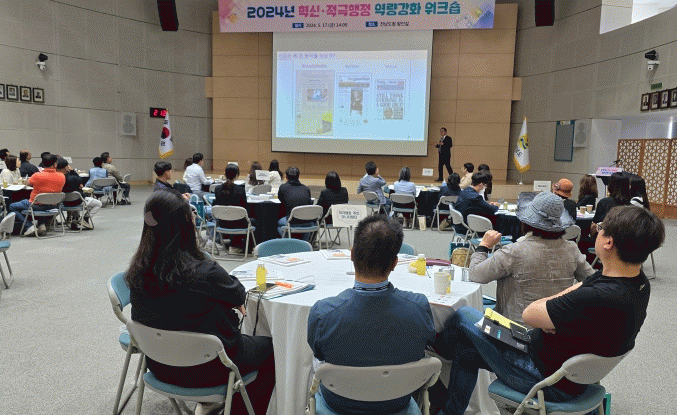 ‘따뜻한 전남, 행동하는 전남’을 주제로 열린 워크숍에는 시군 혁신·적극행정 담당 공무원과 2024년 지역혁신 공모사업에 선정된 지역공동체 대표, 적극행정 주민 모니터링단 등 70여 명이 참석했다.