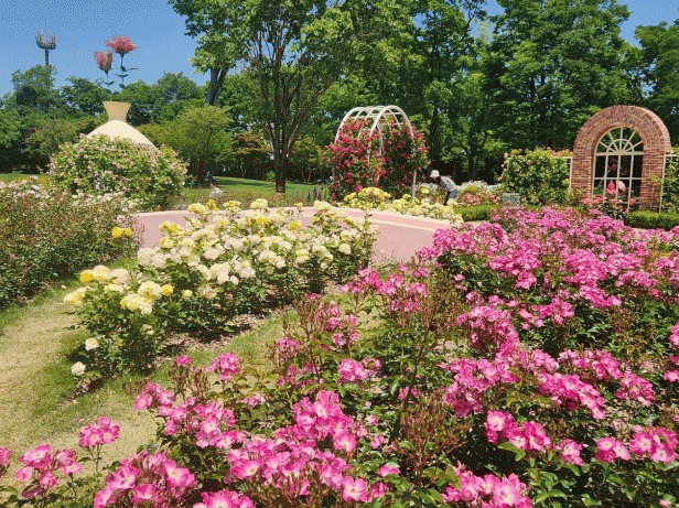 국가정원에는 게브뤼더그림, 서니스카이 등 새로운 장미 품종을 포함 56종의 장미가 식재되어 있으며, 장미를 다채롭게 감상할 수 있는 공간도 마련됐다.