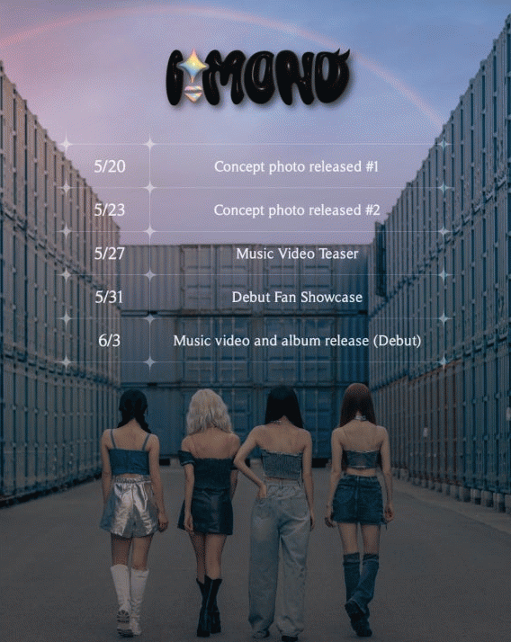 19일 소속사 비더맥스 측은 오는 6월 3일 데뷔하는 걸그룹 아이몬드의 싱글앨범 발매에 대한 스케줄러를 공식 SNS 계정을 통해 쇼케이스, 뮤비공개 일정까지 공지했다.