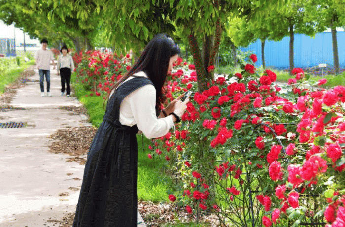 담양읍과 강쟁마을 주민들이 농업기술센터부터 강쟁마을까지 총 1.5km 구간에 조성한 장미길은 조성 3년 차를 맞아 그 어느 때보다도 풍성하고 붉고 아름다운 꽃물결로 장관을 이루고 있다.
