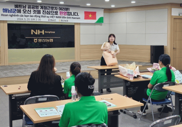 이와관련 해남군과 황산농협은 지난 20일 결혼이민자의 가족친척 초청 방식으로 입국한 베트남 계절근로자 22명의 입국 행정절차를 마치고, 환영식과 함께 근로자 교육을 가졌다.
