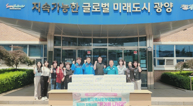 본 사업은 지난해 10월 태인동 명당산단에 광양공장을 준공한 애경특수도료(주)가 지정기탁한 후원금 5백만원으로 추진하게 됐으며, 5월부터 12월까지 월 1회에 걸쳐 취약계층 독거노인 25가구에 밑반찬을 지원한다.