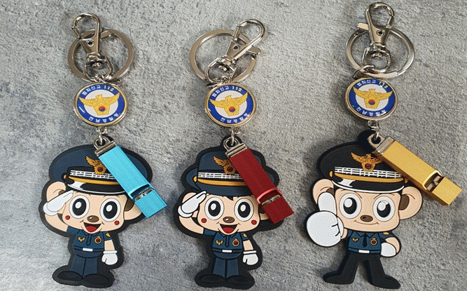이 호루라기는 포돌이·포순이 캐릭터를 활용한 열쇠고리 형태로서 휴대전화나 가방 등에 손쉽게 부착할 수 있어 활용도가 높아 상시 착용이 가능하다.
