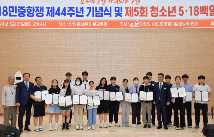 기념식은 올해 5회를 맞이한 청소년 5·18백일장의 시상과 담양행사위원회 7년의 기록영상 상영, 추모의 마음을 담은 문화 및 합창 공연과 유기농 주먹밥 나눔 행사 등이 진행됐다.