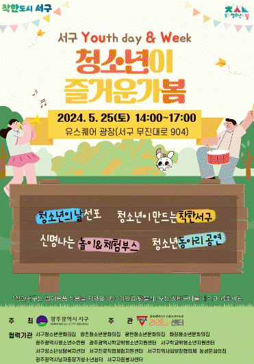 서구 청소년 주간인 26일부터 31일까지는 서구청소년수련관, 서구청소년문화의집, 서구학교밖청소년지원센터 등 관내 청소년시설 7개소 주관으로 시설별 특화 프로그램 운영 및 스탬프 투어 이벤트가 진행된다. 이어 6월1일에는 서구청소년꿈누리센터 1주년 기념행사가 열린다.