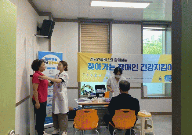이날 최신 의료장비를 갖춘 전남건강버스는 전라남도장애인종합복지관 장흥분관을 직접 찾아가 건강검진을 실시했다.