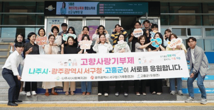 나주시 사회복지과는 최근 광주광역시 서구 기후환경과와 고흥군 두원면과 고향사랑기부제 상호 교차 기부에 동참했다고 23일 밝혔다.