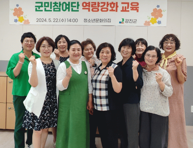 오정숙 군민행복과장은 “바쁜 시기에도 교육에 참여해준 군민참여단 여러분께 감사드린다”며 “강진군 특성에 맞는 정책 제안과 다양한 시책 발굴을 위한 군민참여단의 적극적인 활동을 기대한다”고 말했다.