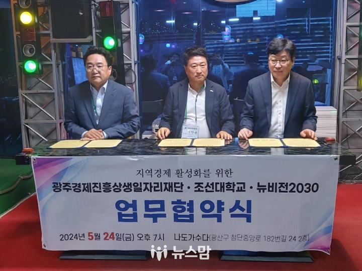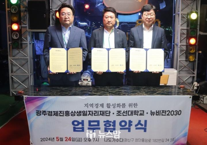 이번 협약식은 침체된 지역 경제 활성화를 위해 뉴비전2030 오방용 회장과 광주경제진흥상생일자리재단 김현성 대표이사, 조선대학교 김춘성 총장 등 협약 기관별 주요 목적 및 사업에 관해 상호 협력하기로 했다.