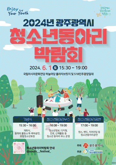 광주광역시는 오는 6월1일 오후 3시30분부터 오후 7시까지 국립아시아문화전당 하늘마당 및 5·18민주광장 일대에서 ‘제3회 청소년동아리박람회’를 개최한다.