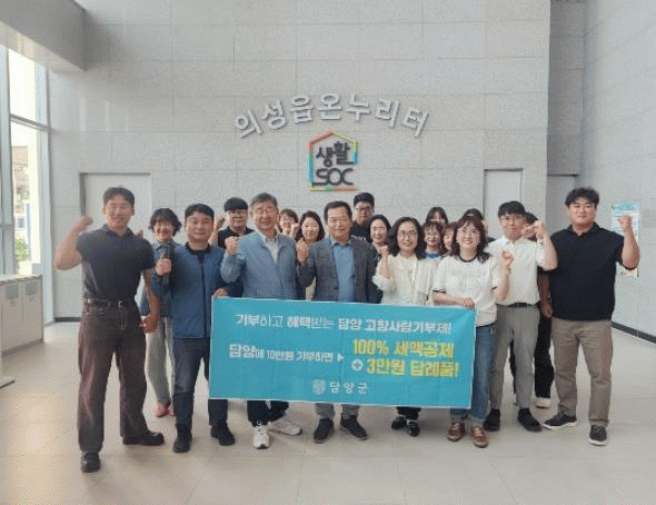 담양군 재무과 직원들은 5월 23일, 24일 이틀간 경북 의성군 의성읍사무소와 경남 김해시 한림면사무소 등을 방문해 우수 청사 선진지를 견학하고, 고향사랑기부제의 각종 기부 혜택과 특색 있는 답례품을 홍보하며 담양의 매력을 알렸다.