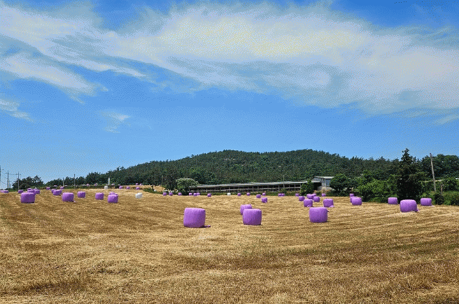 현재 31개소 조사료 경영체를 중심으로 1,700ha에 달하는 면적에서 한창 동계 조사료 수확이 이루어지는 가운데 6만여 개의 보라색 공룡알이 들판을 뒤덮고 있다.