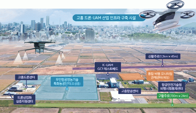 고흥읍에 위치한 국가종합비행성능시험장에는 국방 연구기관과 많은 국내 항공 관련 기업이 개발 중인 소형 무인기·첨단항공교통(AAM) 등 기체의 비행시험과 실증을 위해 찾고 있다.
