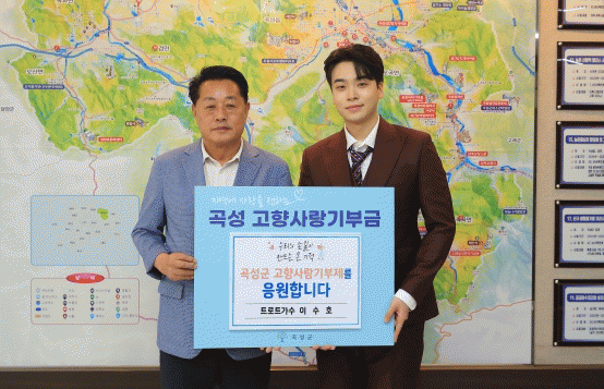 이상철 군수는 “가수 이수호님의 고향사랑기부 참여에 깊이 감사드린다”며 “군민 복지 향상과 지역 발전을 위해 소중히 사용하겠다”고 화답했다.