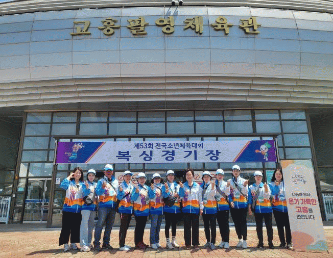 28일 고흥군에 따르면, 전국소년체전 복싱경기에 참여한 자원봉사자는 총 22명으로 대회 기간 경기장 주변 안내와 홍보는 물론 환경정리와 경기장 소독 등 궂은일을 도맡아 했다.