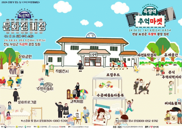 ‘2024 문화가 있는 날 구석구석 문화배달’은 매달 문화가 있는 날(마지막 주 수요일) 주간 토요일에 득량역 추억의 거리에서 '득량역 문화정거장'과 보성 판소리성지에서 '문화가 있는 날 상설 락(樂)!' 총 2개의 문화행사로 열린다.