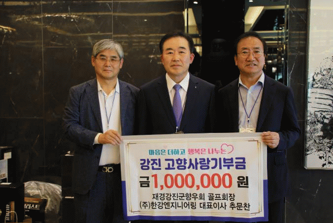 강진군은 지난 29일, 재경향우회 추문찬 골프회장이 고향 강진의 발전을 위해 고향사랑기부금 100만원을 기탁했다고 밝혔다.
