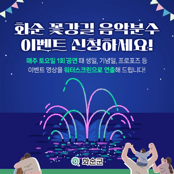 ‘화순 꽃강길 음악분수’는 주민들의 입소문을 타고 큰 호응을 얻어 월평균 5천여 명의 관람객이 방문하고 있으며, 이번에 추가되는 이벤트를 계기로 버스킹, 음악분수 공연 등이 함께 어우러지는 ‘복합 문화공간’으로 자리할 예정이다.