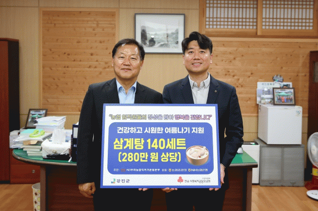 이번 기부는 건강하고 시원한 여름나기를 위한 취지에서 장흥모 농협중앙회 강진군지부장 등과 함께 했으며 기탁된 삼계탕은 강진군 11개 읍·면 취약계층 가정에 전달될 예정이다.