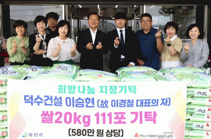 덕수건설 고 이경철 대표는 살아생전 지역사회 봉사하는 마음으로 어려운 이웃을 위한 기부를 하고 싶다는 이야기를 평소했고, 아들인 승현씨가 선친의 뜻을 받들어 이날 기부를 실천했다.