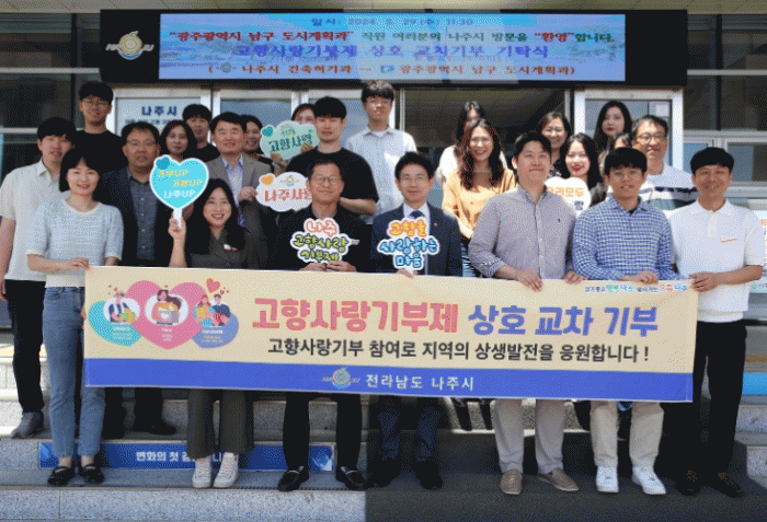 나주시는 최근 시 건축허가과(과장 임중규)와 광주 남구청 도시계획과(과장 송승헌) 전 직원들이 지역사회 발전을 위해 고향사랑기부금 520만원을 기부했다고 31일 밝혔다.